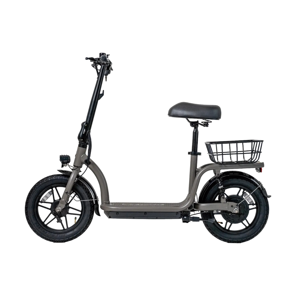 Relájate con el Flex Voyager con asiento. Este cómodo patinete combina la potencia de un patinete eléctrico con la facilidad de una bicicleta para disfrutar de tus viajes en todo momento. Su asiento acolchado, sus grandes neumáticos de aire y su suspensión trasera garantizan una conducción suave incluso en terrenos difíciles. Además, sus prácticas funciones, como la pantalla digital de la batería y la cesta de almacenamiento trasera, te ayudan a disfrutar al máximo de cada viaje.